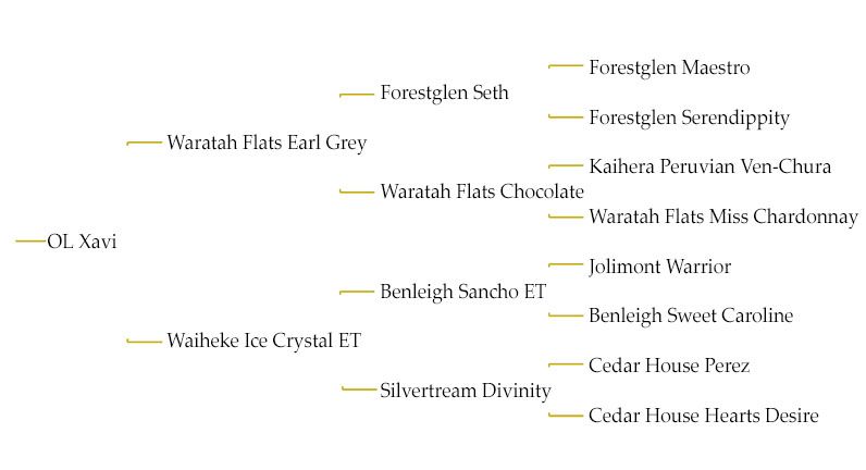 Zijn moeder :" Waiheke Ice Crystal ET" is een volle zus van de multiple Champion "Waiheke Phenomenon ET". Haar moeder: "Silverstream Divinity" heeft ook diverse kampioenstitels behaald. (En vele kampioenen voorgebracht.)