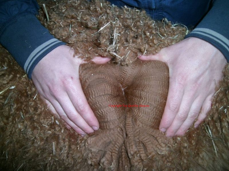 Zijn ultrafijne fleece vertoont een hoog frequente crimpstijl (van zijn kruin tot onder op zijn benen), mooie lokstructuur, hoge amplitude, dichtheid, en een schitterende glans. (Gecombineerd met een goede vachtlengte.)